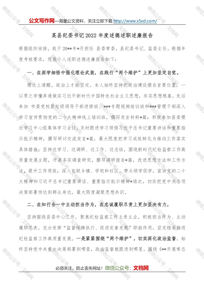 首页精选范文某县纪委书记2022年度述德述职述廉报告
