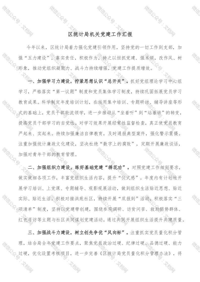 区统计局机关党建工作汇报