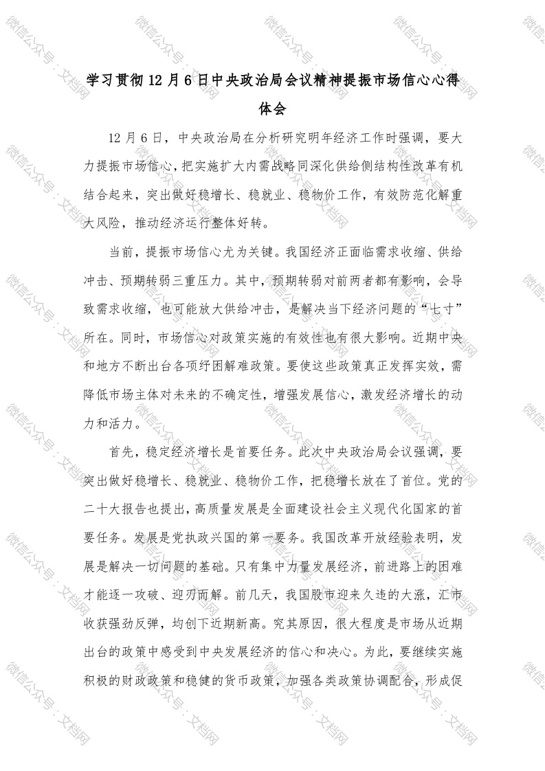 学习贯彻12月6日中央政治局会议精神提振市场信心心得体会