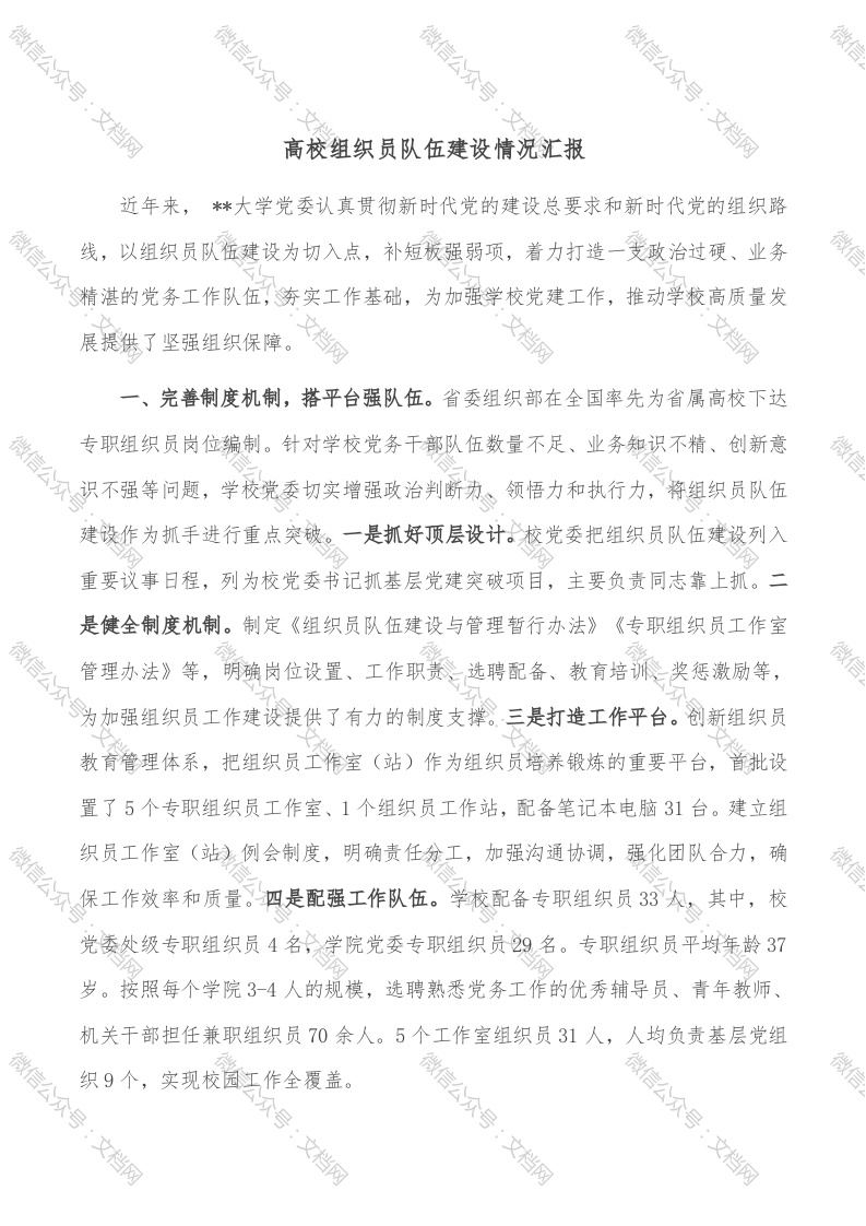 高校组织员队伍建设情况汇报
