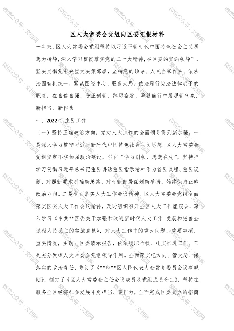 首页讲课讲稿区人大常委会党组向区委汇报材料