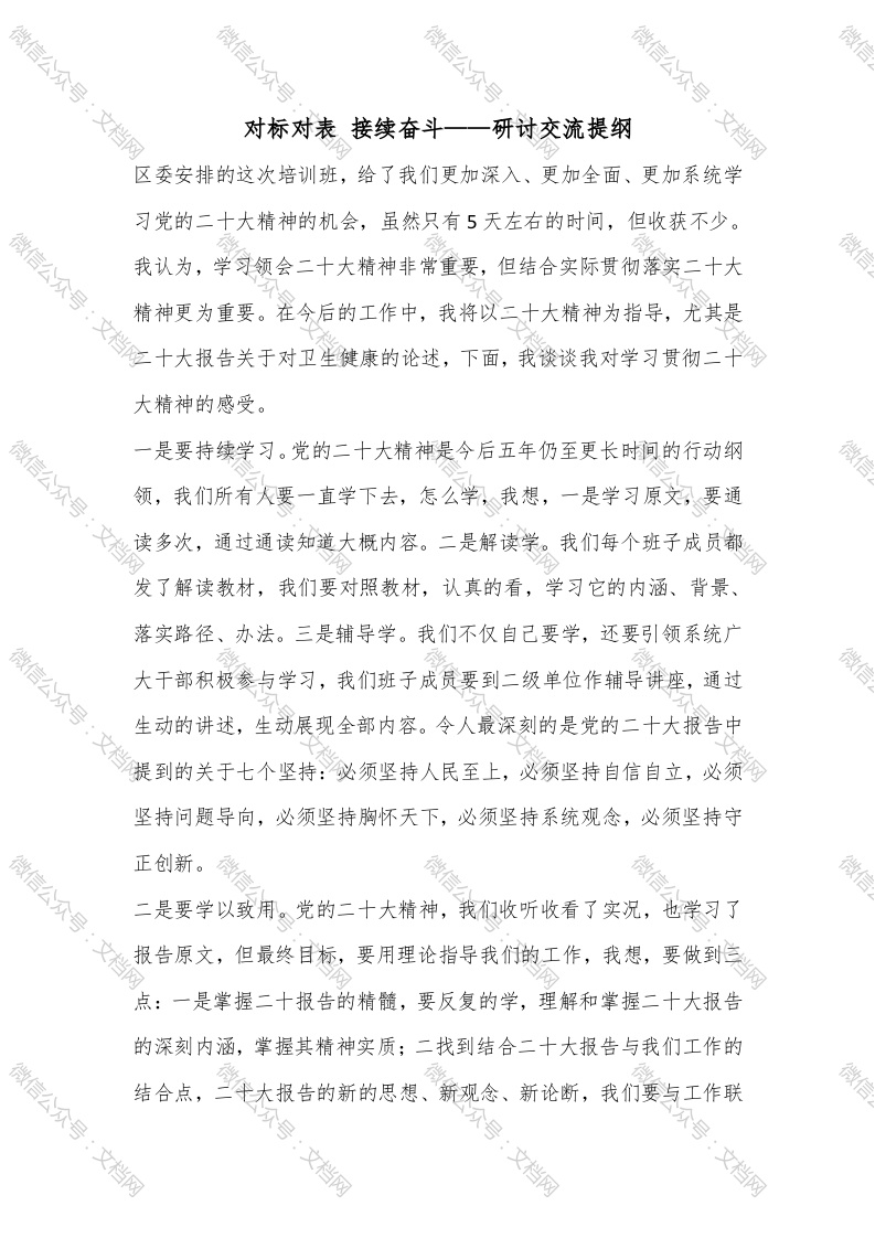 首页讲课讲稿对标对表 接续奋斗——研讨交流提纲