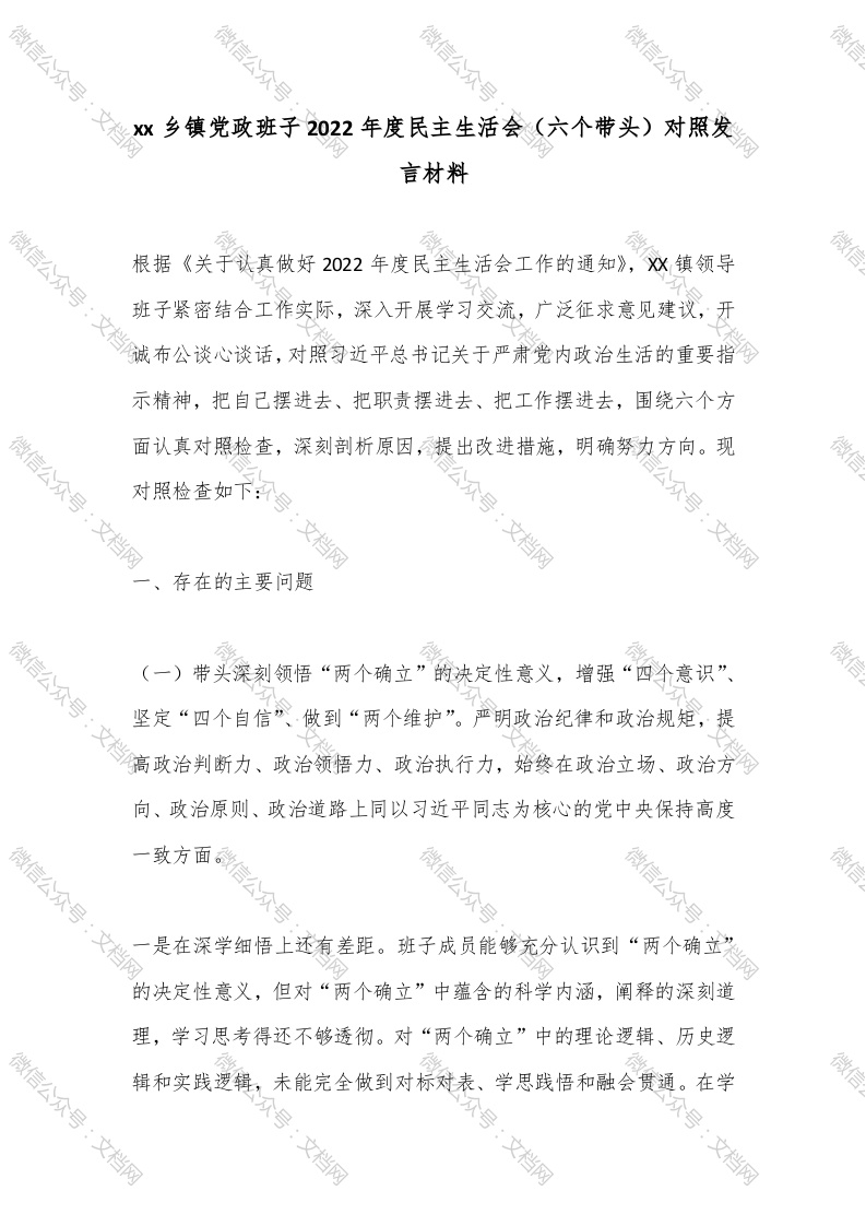 首页讲课讲稿xx乡镇党政班子2022年度民主生活会(六个带头)对照发言材料