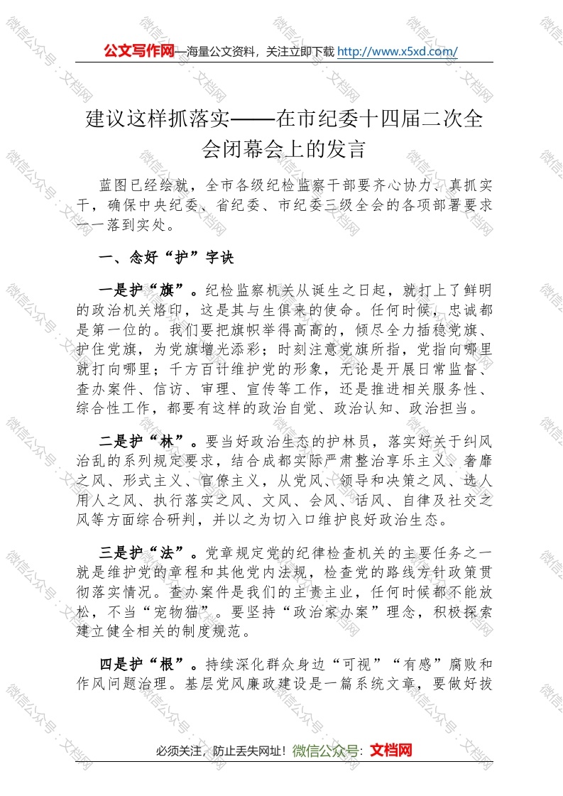 首页材料汇编建议这样抓落实——在市纪委十四届二次全会闭幕会上的发言