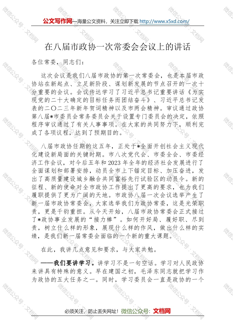 首页材料汇编在八届市政协一次常委会会议上的讲话