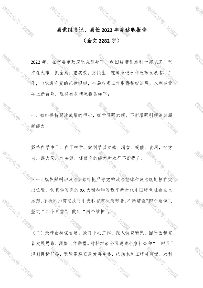 首页材料汇编局党组书记、局长2022年度述职报告(全文2282字)