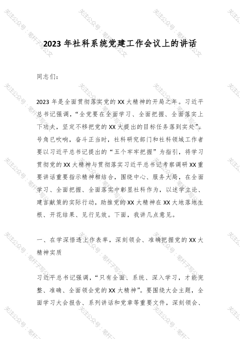 首页材料汇编2023年社科系统党建工作会议上的讲话