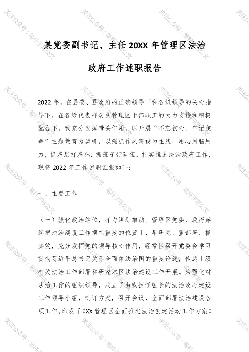首页材料汇编某党委副书记、主任20XX年管理区法治政府工作述职报告