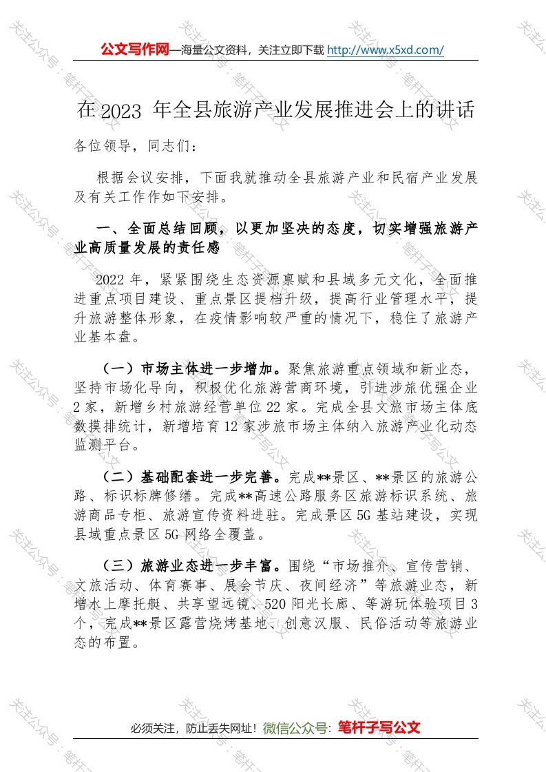 首页材料汇编在2023年全县旅游产业发展推进会上的讲话